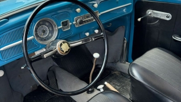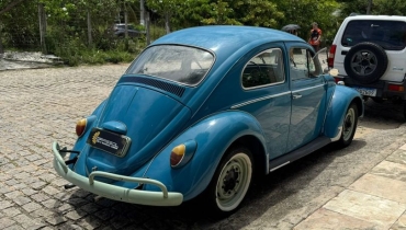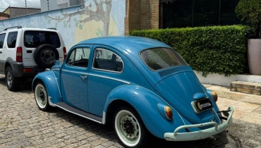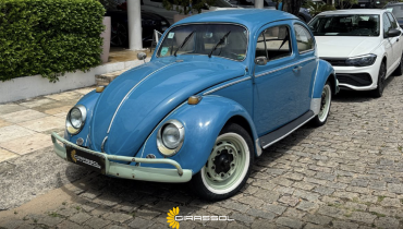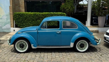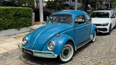 DESCRIÇÃO DO VEÍCULO Motor 1.3 Boxer refrigerado a ar Câmbio manual de 4 marchas Tração traseira Rodas de aço com calotas no padrão clássico Para-choques estilo europeu com over-riders Faróis redondos originais Setas sobre os paralamas Frisos cromados originais Retrovisores cromados Interior com acabamento clássico Painel metálico na cor do veículo Volante original estilo vintage Pintura em azul clássico Detalhes externos em tom claro (parachoques e rodas personalizados) Veículo com excelente apresentação estética