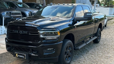 DESCRIÇÃO DO VEÍCULO: Freios ABS Airbags frontais Airbags laterais dianteiros Airbags de cortina Controle eletrônico de estabilidade (ESC) Controle de tração (TCS) Assistente de partida em rampa (HSA) Alerta de colisão frontal com frenagem autônoma Alerta de permanência em faixa (Lane Keep Assist) Monitoramento de ponto cego Assistente de descida (HDC) Controle de oscilação de reboque (Trailer Sway Control) Câmera 360° e câmera de caçamba Sensores de estacionamento dianteiros e traseiros Faróis Full LED com acendimento automático Faróis de neblina em LED Luz de condução diurna (DRL em LED) Lanternas traseiras em LED Alarme antifurto Travamento central das portas ISOFIX para fixação de cadeira infantil Ar-condicionado digital dual zone Bancos dianteiros elétricos, aquecidos e ventilados Banco traseiro bipartido, aquecido e rebatível Volante multifuncional revestido em couro, aquecido e com ajuste de altura e profundidade Retrovisores externos elétricos, rebatíveis, com memória e aquecimento Retrovisor interno eletrocrômico Vidros elétricos dianteiros e traseiros com função one touch Central multimídia Uconnect com tela de 12", GPS, Bluetooth, Apple CarPlay e Android Auto Sistema de som premium Harman Kardon com subwoofer Painel de instrumentos digital configurável de 12" Carregador de celular por indução Chave presencial com partida por botão e remoto Computador de bordo Controle de cruzeiro adaptativo Limitador de velocidade Direção assistida eletricamente Caçamba com protetor, iluminação em LED e tomada de força Rodas de liga leve aro 20" exclusivas Night Edition Tração 4x4 reduzida (4WD) com seletor eletrônico Motor 6.7 Turbo Diesel Cummins de alta performance