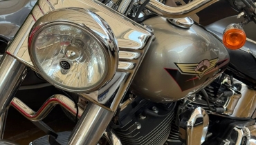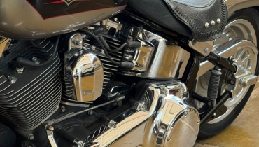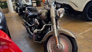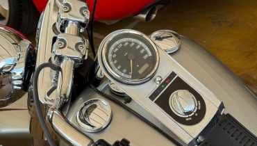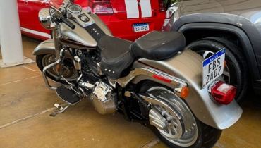 DESCRIÇÃO DO VEÍCULO Motor Twin Cam 96B 1584 cc com injeção eletrônica (ESPFI) Transmissão de 6 marchas (Cruise Drive) Rodas Bullet Hole Disc em alumínio fundido Pneu traseiro largo 200 mm Guidão fat de 1¼ com risers robustos Assento biposto com detalhes estilo bullet Paralamas reduzidos para visual mais agressivo Tanque Fat Bob com alça decorativa cromada Farol cromado grande Floorboards completos com câmbio heel/toe Instrumentação no tanque (velocímetro eletrônico, hodômetro, relógio, indicador de 6ª marcha, alertas)