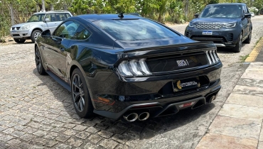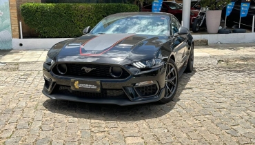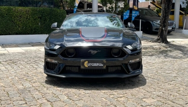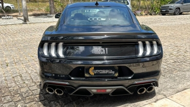 DESCRIÇÃO DO VEÍCULO: Motor 5.0 V8 aspirado de 483 cv e 56,7 kgfm de torque Transmissão automática de 10 marchas com trocas sequenciais no volante (paddle shifts) Tração traseira (RWD) Aceleração de 0 a 100 km/h em aproximadamente 4,3 segundos Velocidade máxima de 250 km/h (limitada eletronicamente) Suspensão dianteira independente tipo MacPherson e traseira multilink com ajuste esportivo Amortecedores adaptativos MagneRide Freios a disco ventilados nas quatro rodas com pinças Brembo de seis pistões na dianteira Controle de estabilidade e tração com modos configuráveis Modos de condução: Normal, Esportivo, Pista, Neve/Molhado, Drag e Track Apps Direção elétrica progressiva com ajuste de peso Controle de largada (Launch Control) Sistema de escape ativo com válvulas ajustáveis Faróis Full LED com luzes diurnas em LED Lanternas traseiras em LED com o tradicional design triplo da marca Sensor de chuva e faróis automáticos Rodas de liga leve aro 19 com pneus Michelin Pilot Sport 4S de alta performance Aerofólio traseiro funcional e entradas de ar no capô Retrovisores elétricos e aquecidos Seis airbags (frontais, laterais e de cortina) Freios ABS com EBD e assistência de frenagem Controle eletrônico de estabilidade (ESC) e assistente de partida em rampa Câmera de ré e sensores de estacionamento traseiros Ar-condicionado automático digital dual zone Bancos dianteiros esportivos Recaro com ajuste elétrico e aquecimento/refrigeração Bancos revestidos em couro com costuras contrastantes Volante multifuncional revestido em couro com ajuste de altura e profundidade Painel de instrumentos digital configurável de 12 Central multimídia SYNC 3 com tela de 8 compatível com Android Auto e Apple CarPlay Sistema de som premium Bang & Olufsen com 12 alto-falantes e subwoofer Carregador de celular por indução e entrada USB dupla Partida por botão e chave presencial Freio de estacionamento eletrônico Iluminação interna ambiente configurável em LED Computador de bordo completo com diversas informações de performance Controle de cruzeiro adaptativo e limitador de velocidade Assistente de permanência em faixa e alerta de colisão frontal Revestimento interno em preto com detalhes em alumínio escovado Logo Mach 1 exclusivo, plaqueta numerada e detalhes aerodinâmicos funcionais