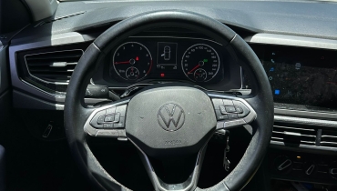 DESCRIÇÃO DO VEÍCULO: Motor 1.0 Turbo TSI Flex, 3 cilindros Potência de 128 cv (etanol) e 116 cv (gasolina) Câmbio automático de 6 marchas Tração dianteira (FWD) Direção elétrica progressiva Suspensão dianteira McPherson e traseira por eixo de torção Freios a disco nas quatro rodas com ABS e EBD Controle eletrônico de estabilidade (ESC) Controle de tração (ASR) Assistente de partida em rampa (HSA) Bloqueio eletrônico do diferencial (EDS) Airbags frontais e laterais Alerta de frenagem de emergência Faróis Full LED com luz diurna em LED (DRL) Lanternas traseiras em LED Faróis com regulagem de altura Luz traseira de neblina Retrovisores externos elétricos com repetidores de seta Rodas de liga leve aro 16" Sensor de estacionamento traseiro Câmera de ré Ar-condicionado digital Chave presencial Kessy com partida por botão Vidros elétricos nas quatro portas com função one touch Retrovisor interno eletrocrômico Volante multifuncional em couro com ajuste de altura e profundidade Bancos revestidos em tecido premium Banco do motorista com ajuste de altura Banco traseiro bipartido e rebatível Central multimídia VW Play com tela touchscreen de 10,1" Bluetooth, USB, Wi-Fi, Apple CarPlay e Android Auto sem fio Painel digital Active Info Display de 10,25" Computador de bordo multifuncional Controle de velocidade de cruzeiro (Cruise Control) Direção com ajuste de assistência variável Porta-malas com abertura elétrica Iluminação interna branca e luz no porta-malas Alarme antifurto com imobilizador eletrônico